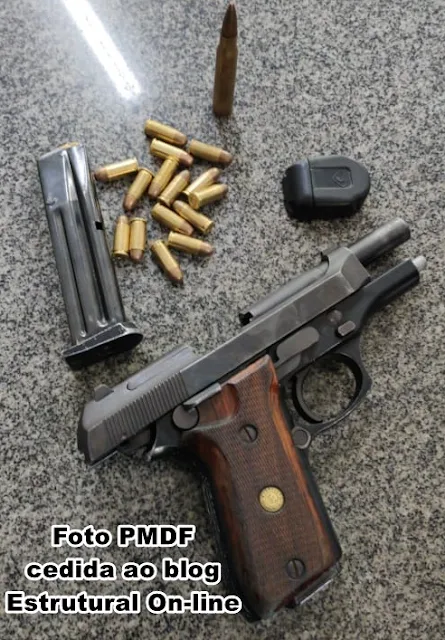 Segundo informações da polícia, no momento da revista foi encontrado em seu bolso: 28 munições calibre 32, uma munição calibre 762 e um carregador de pistola 765, devido terem encontrado todas essas munições e o carregador, a equipe resolveu subir no telhado da casa a fim de averiguar o que o abordado teria jogado em cima do telhado. Durante a busca feita, foi encontrado uma pistola calibre 765 que estava municiada "carregada".