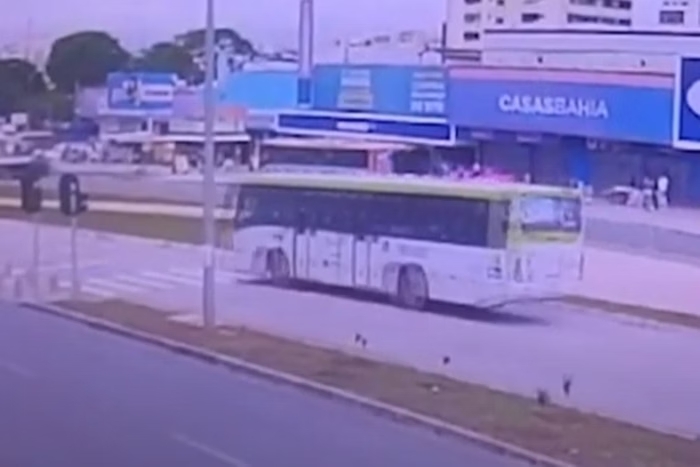 Câmeras de segurança registraram o momento em que um ciclista, de 27 anos, foi atropelada por um ônibus da empresa BSBus, na manhã desta terça-feira (24/12), no centro de Taguatinga. A vítima acabou atropelada na pista exclusiva para coletivos.